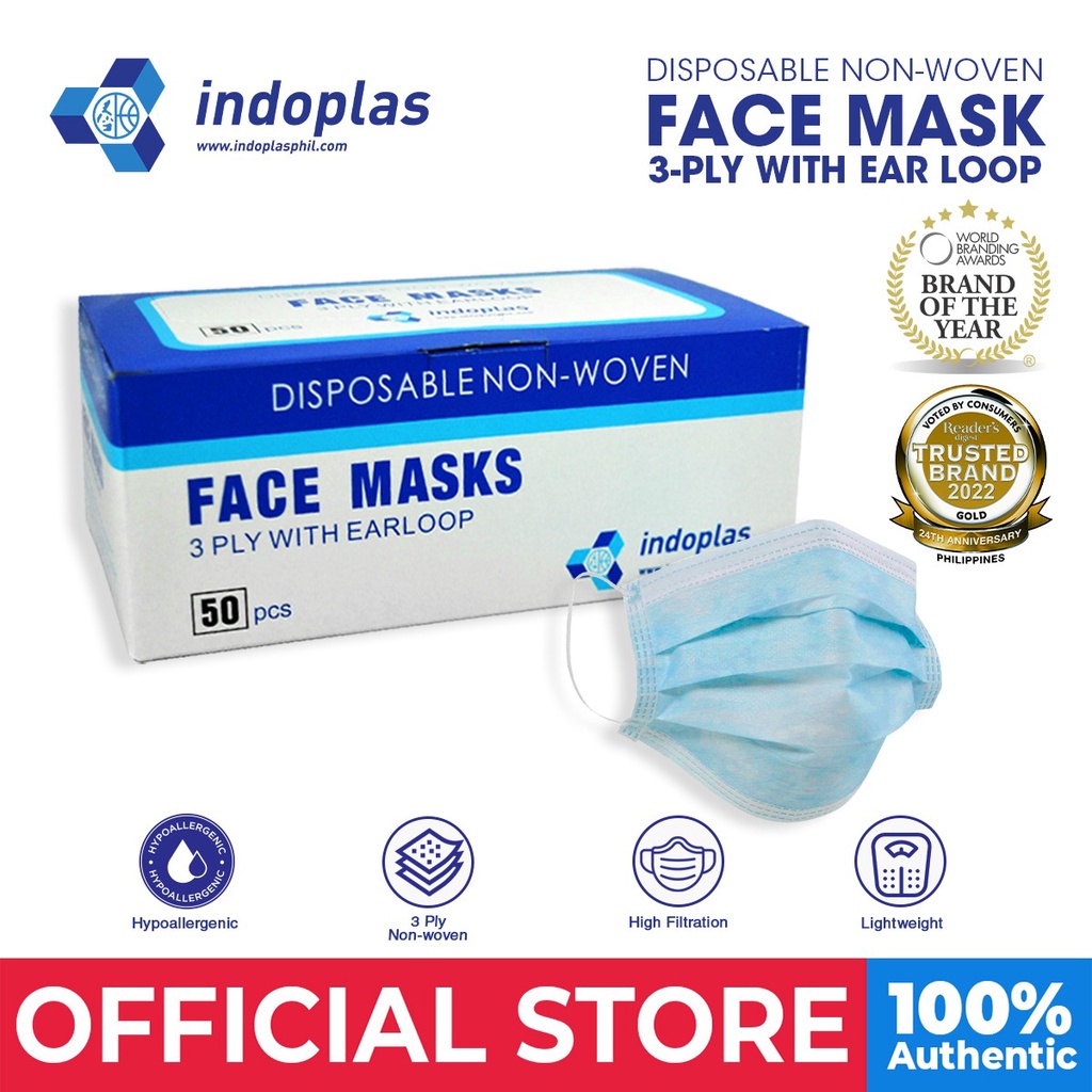 Indoplas Disposable Face Mask 3Ply with Earloop 1 box (50 pcs